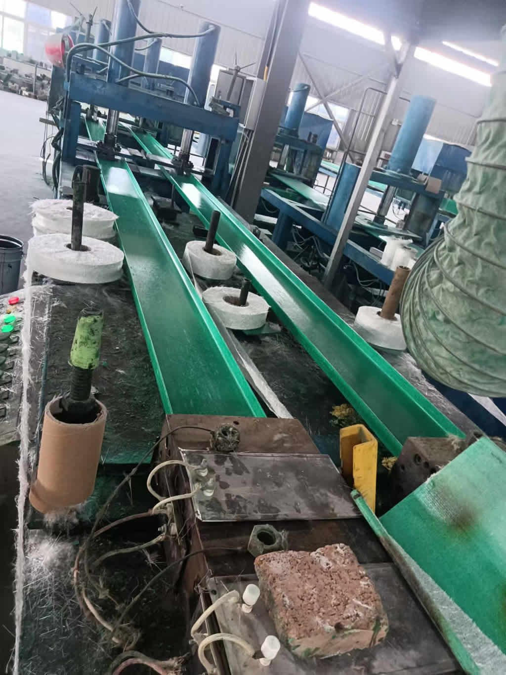 首先,生產(chǎn)過程中使用的主要原材料是玻璃纖維和樹脂。玻璃纖維作為增強材料,提供了高強度和良好的抗沖擊性能,而樹脂(通常為不飽和聚酯樹脂或環(huán)氧樹脂)則作為基體材料,賦予橋架良好的耐腐蝕性和成型性。生產(chǎn)過程中,首先需要將玻璃纖維按照要求進(jìn)行裁剪和處理,然后與樹脂進(jìn)行混合,確保材料的均勻性和良好的粘合性。